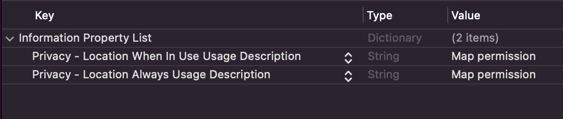 Privacy - Location When In Use Usage Description : 앱을 사용중일때만 허용 (포그라운드)