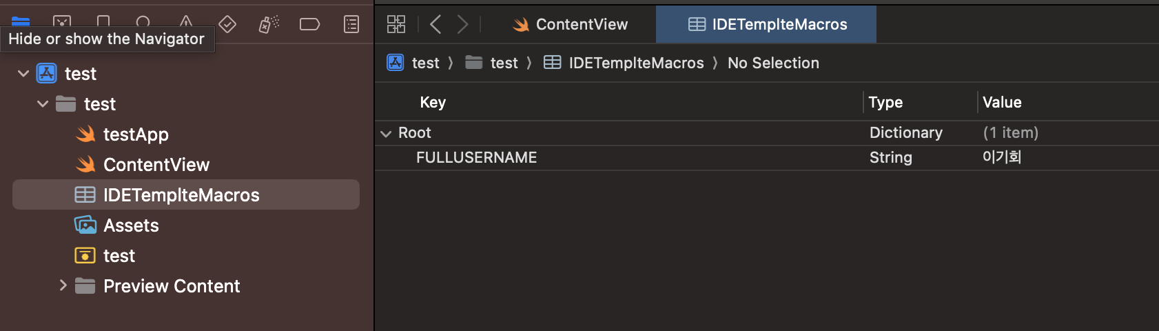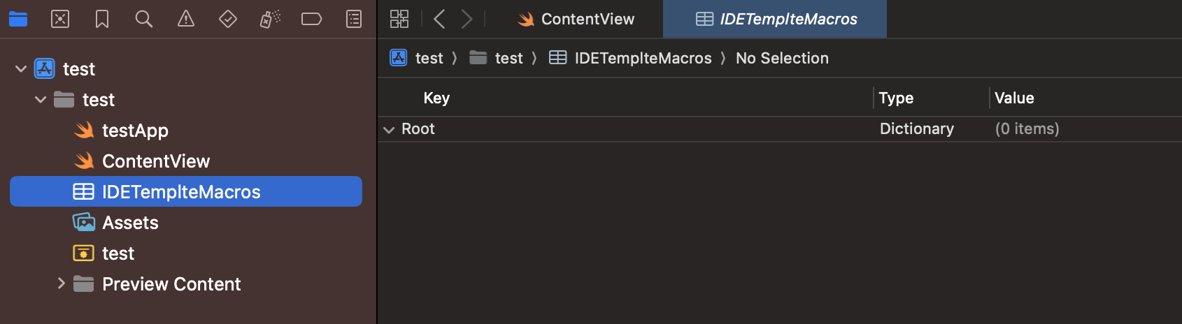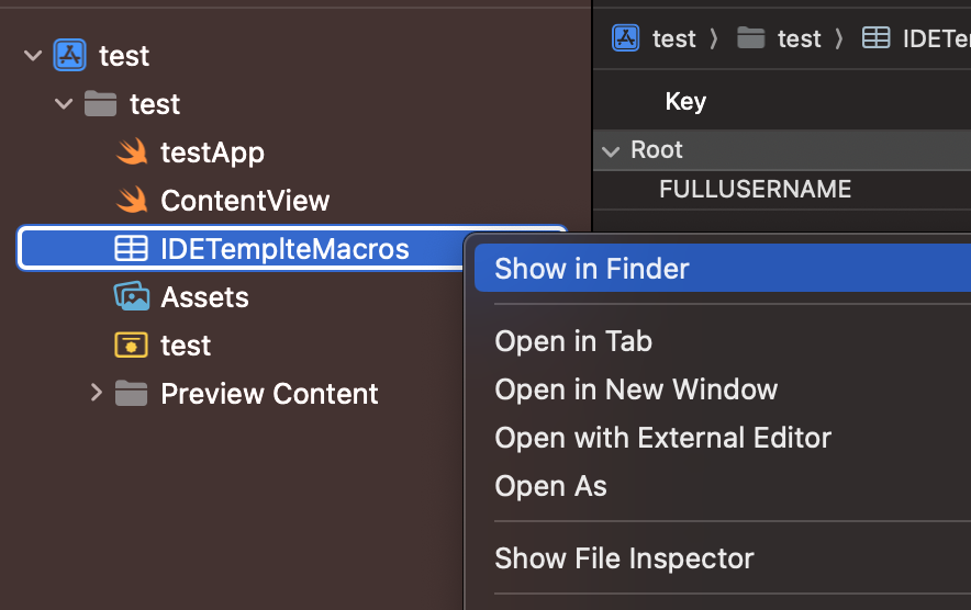 4. IDETemplateMacros.plist 파일을 파인더에서 열고
