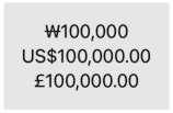 code에는 ISO-4217 코드를 찾아서 입력하면 된다. 원화는 소숫점을 표시하지 않지만 달러나 파운드 스털링같은 경우에는 소숫점 둘째자리까지 표시해준다.